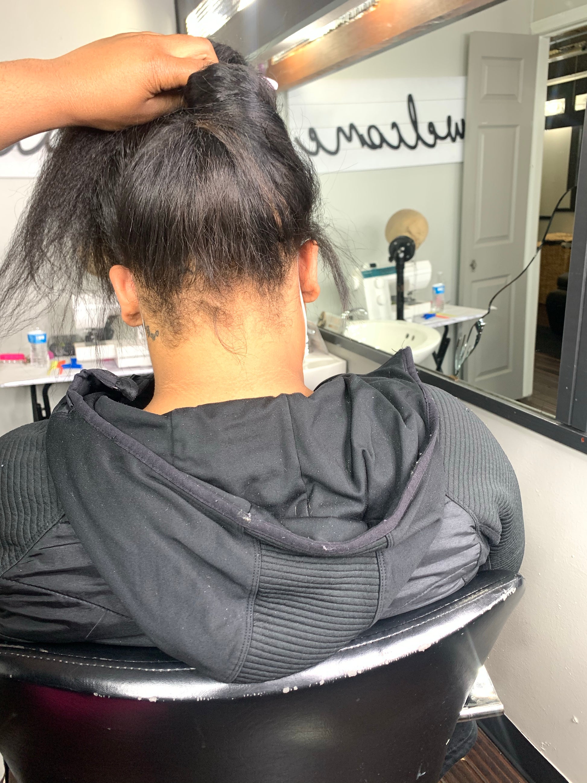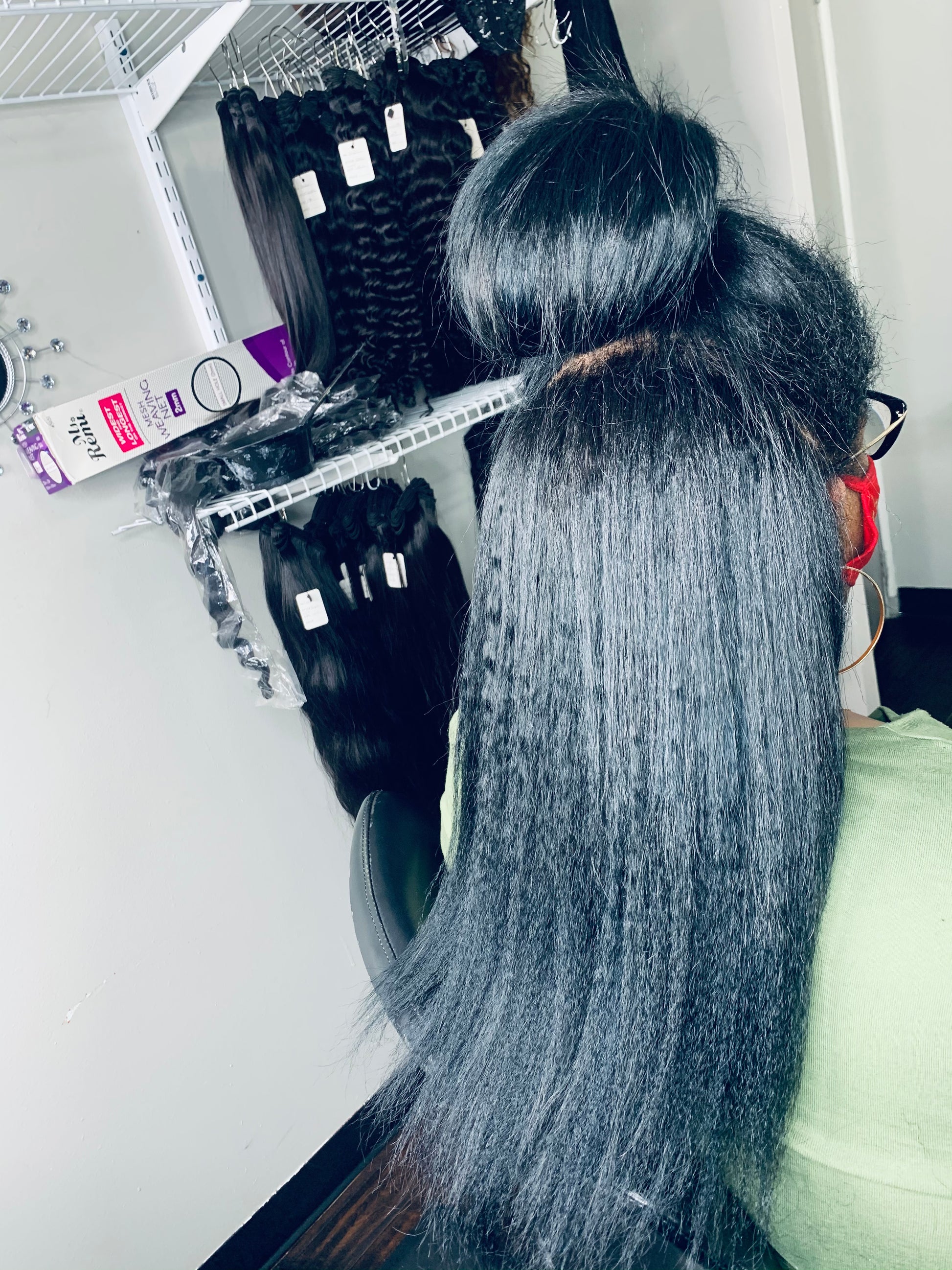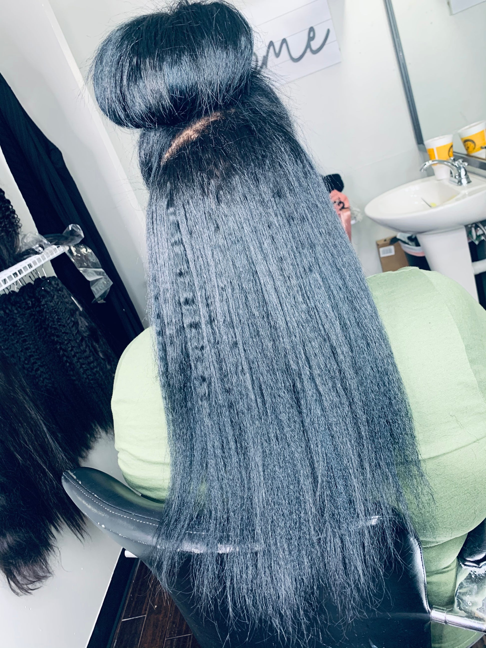 This install combines the micro links and sew in for versatility and less maintenance by having less of your natural hair left out