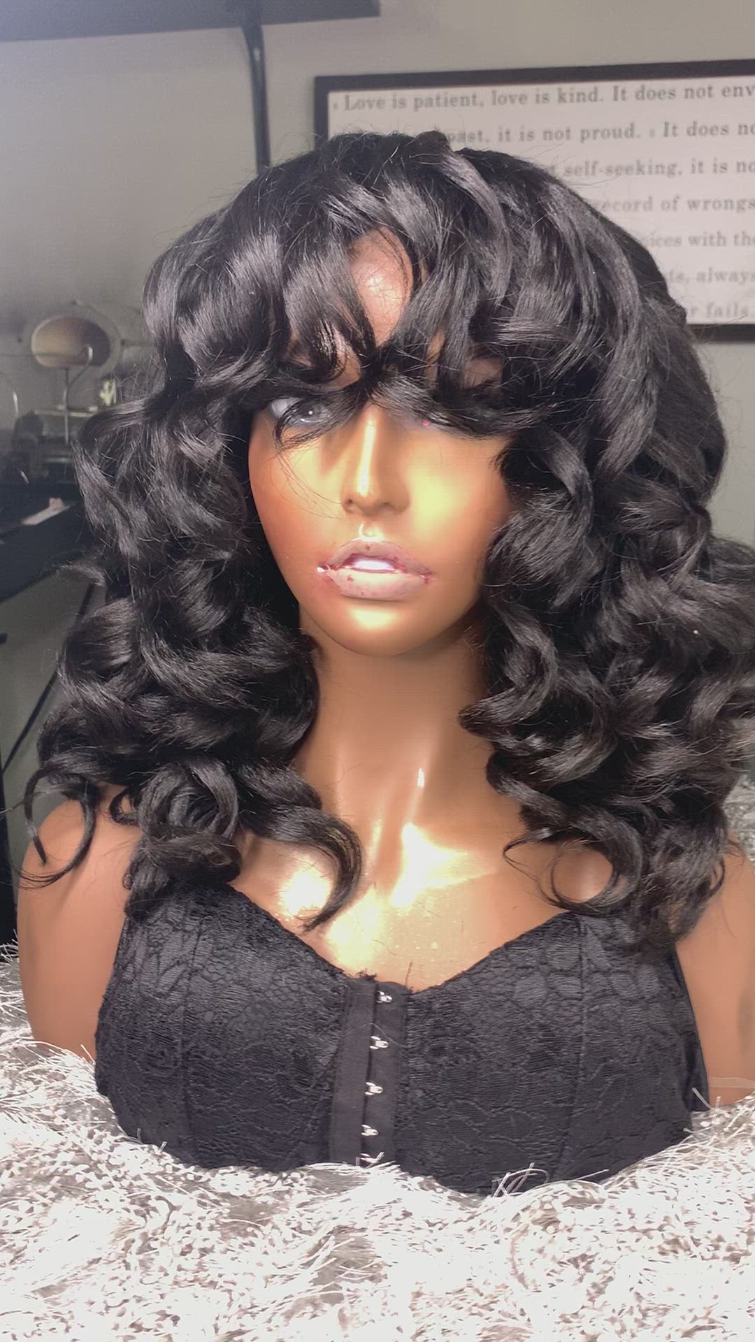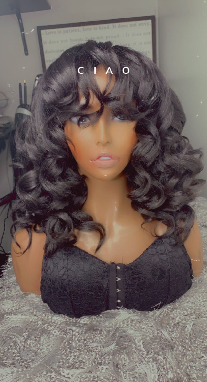 cut with bangs and wand curled for styling