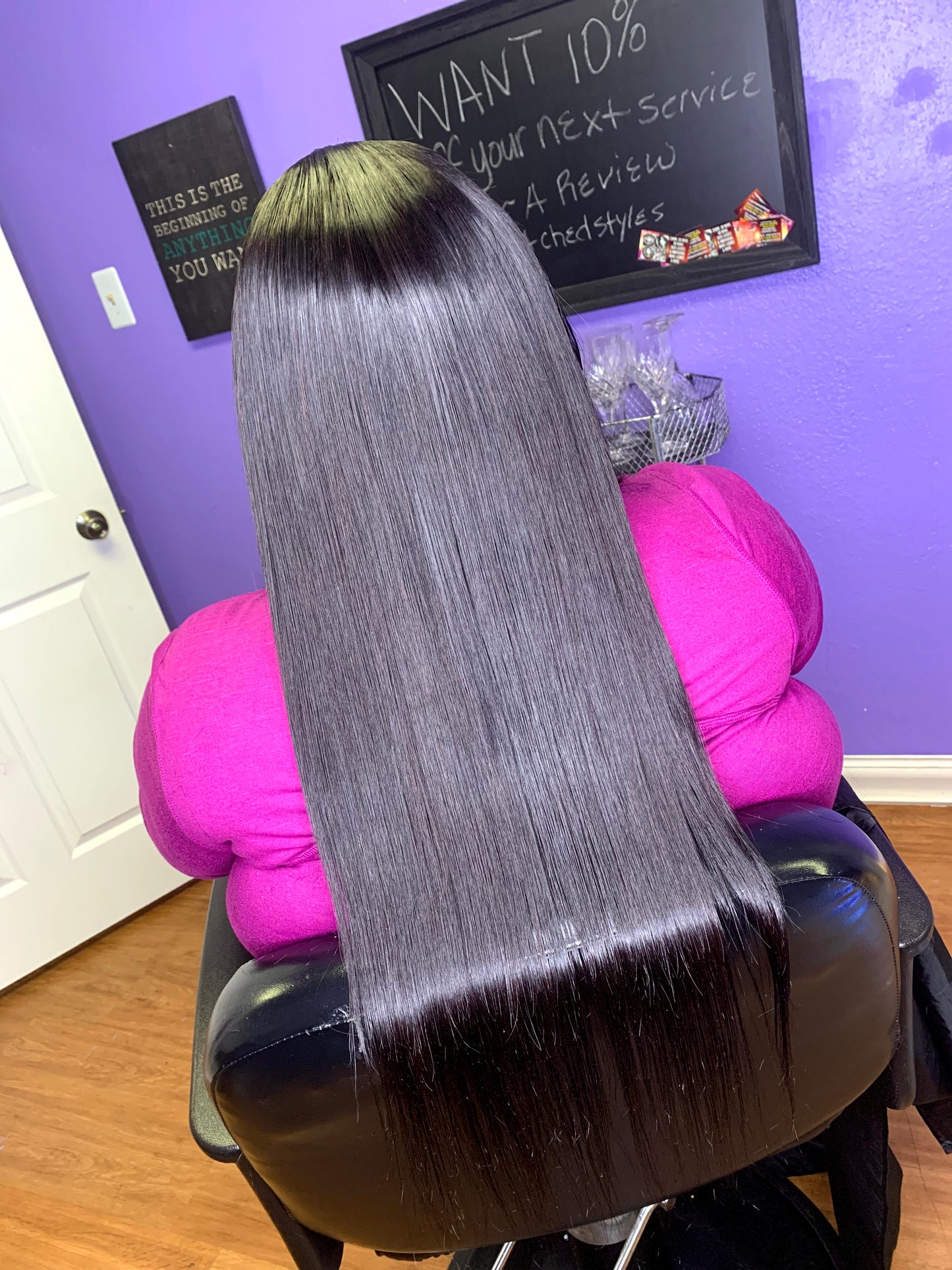 a lace closure is added to give the style a completed look without the daily use of heat or manipulation of your natural hair